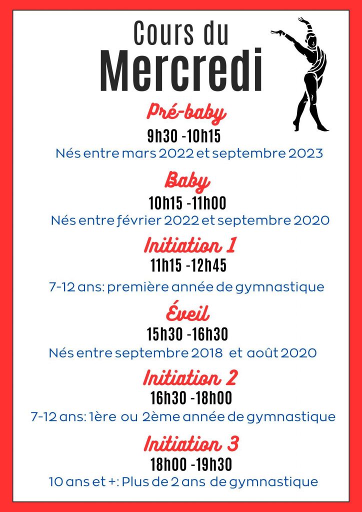 Vous trouverez ci-après le détail pour chaque cours ainsi que l’horaire affecté :